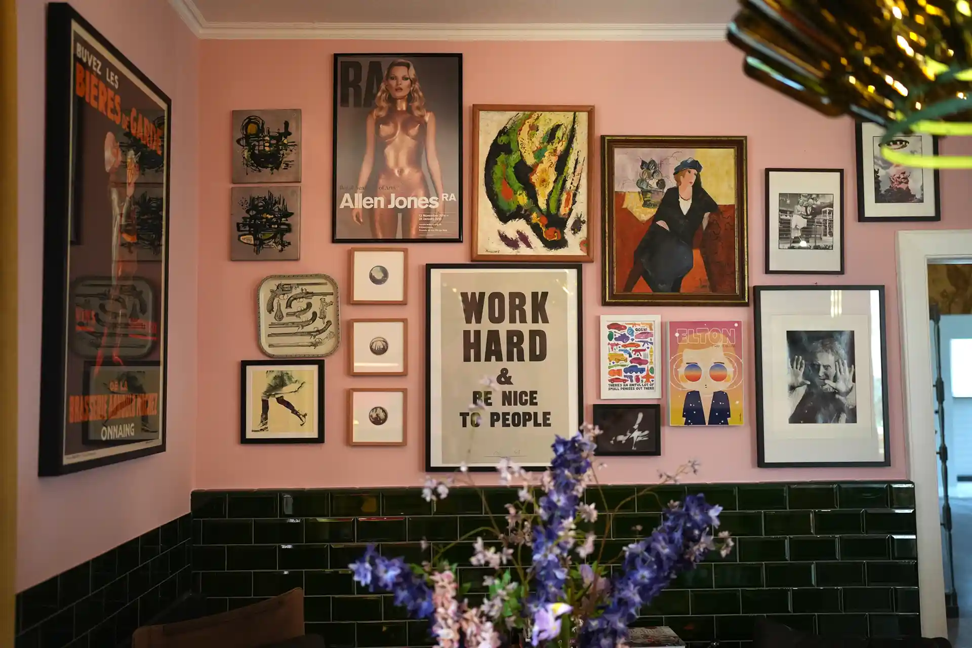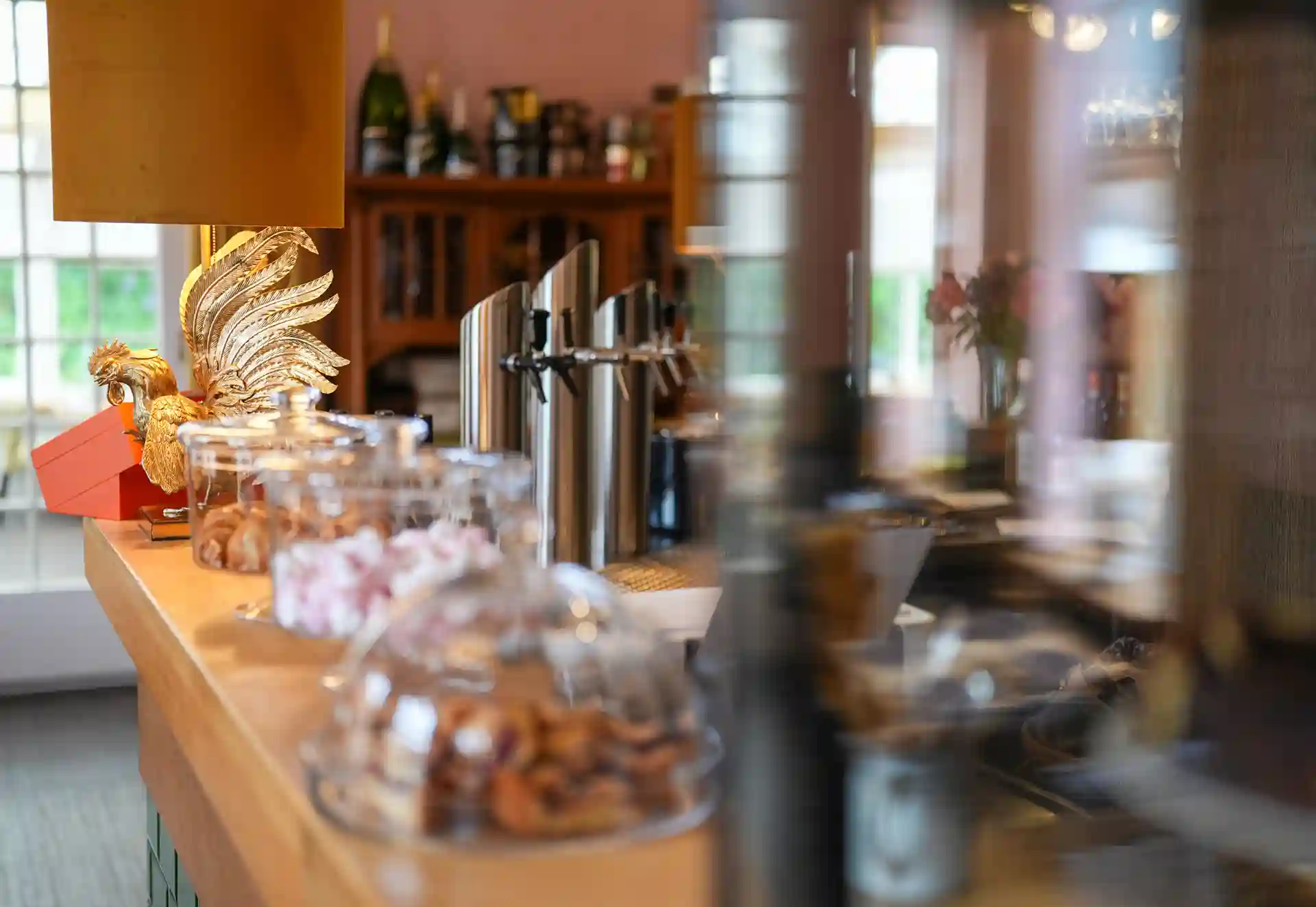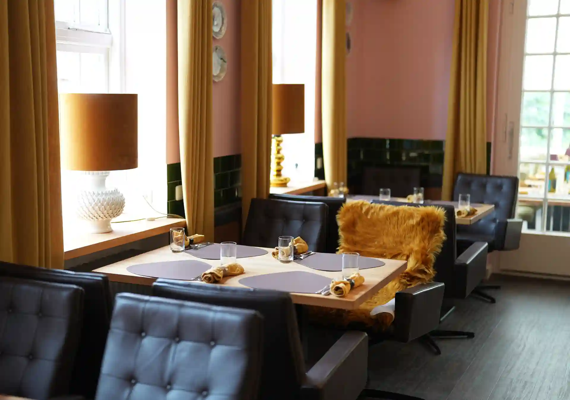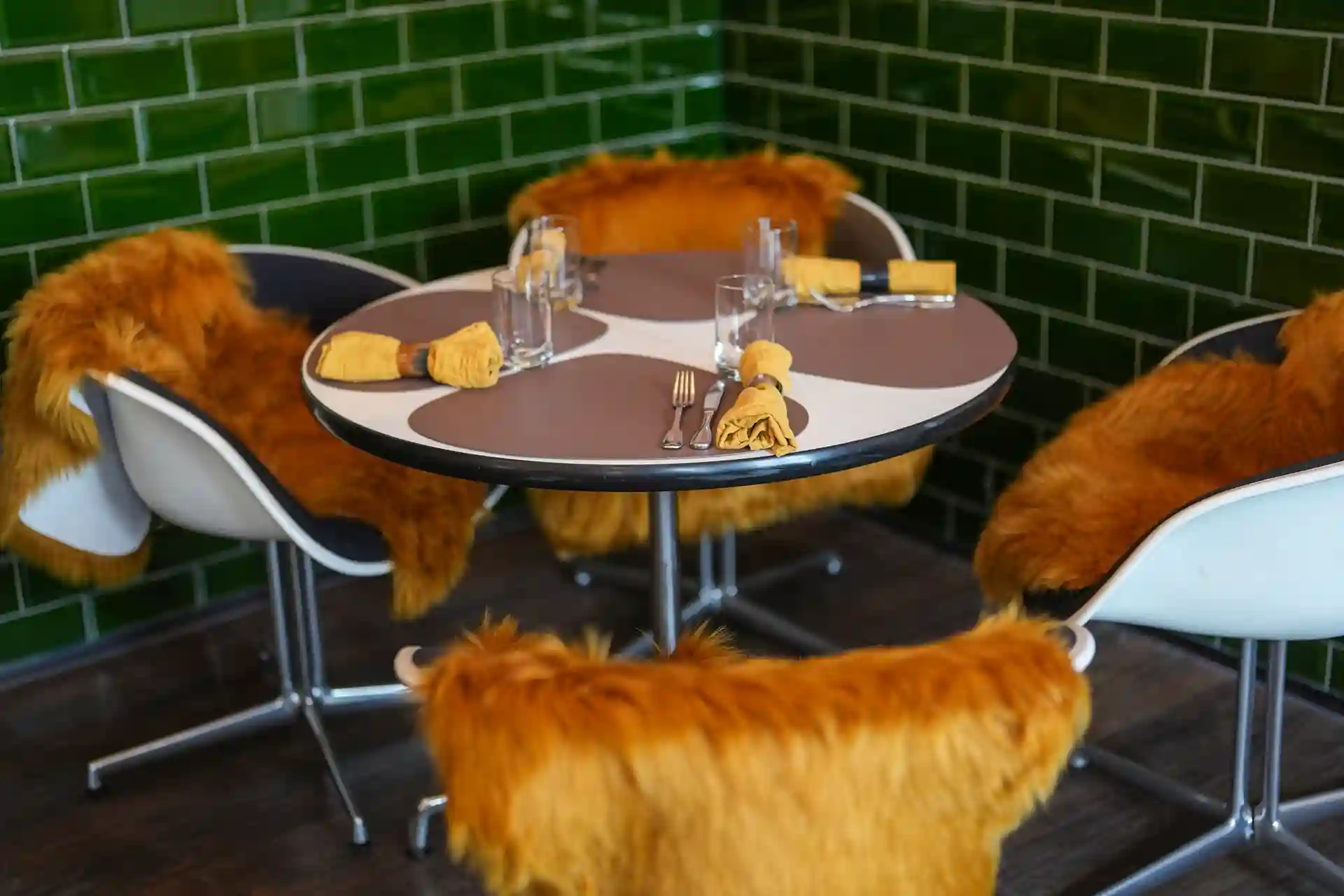 Auch die Einrichtung sorgt für eine einmalige gemütliche und stimmungsvolle Atmosphäre. Zwei Lounges, eine mit einer Lampe aus einem alten französischen Flaschentrockner, Weinkäfige, Teppiche aus den 70ern, Möbeln aus allen Epochen, ein Michelin Männchen oder Teller von Limoges – wie im Wildwechsel – es gibt viel zu entdecken.
