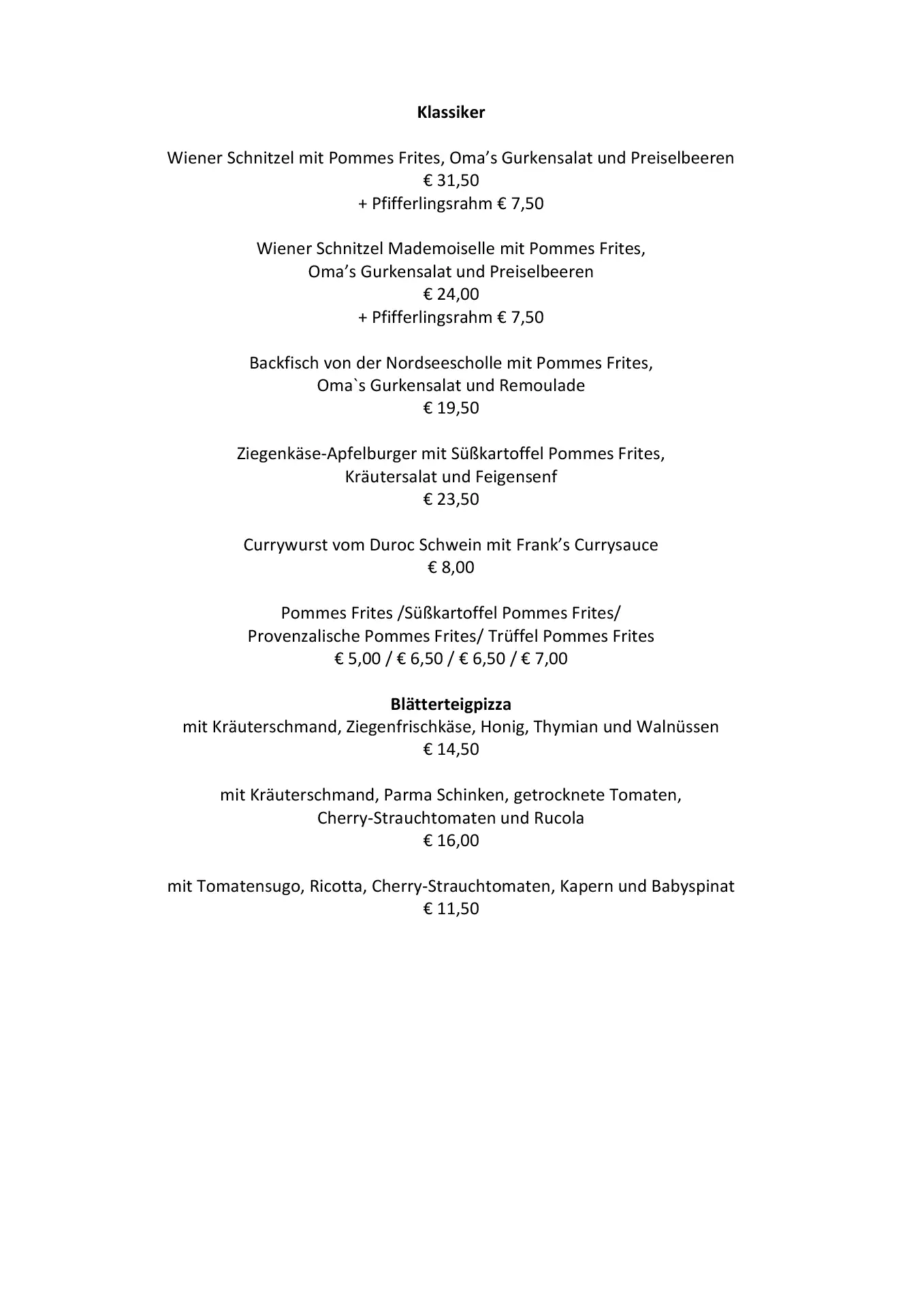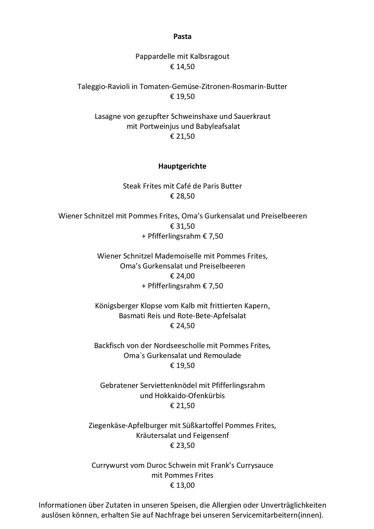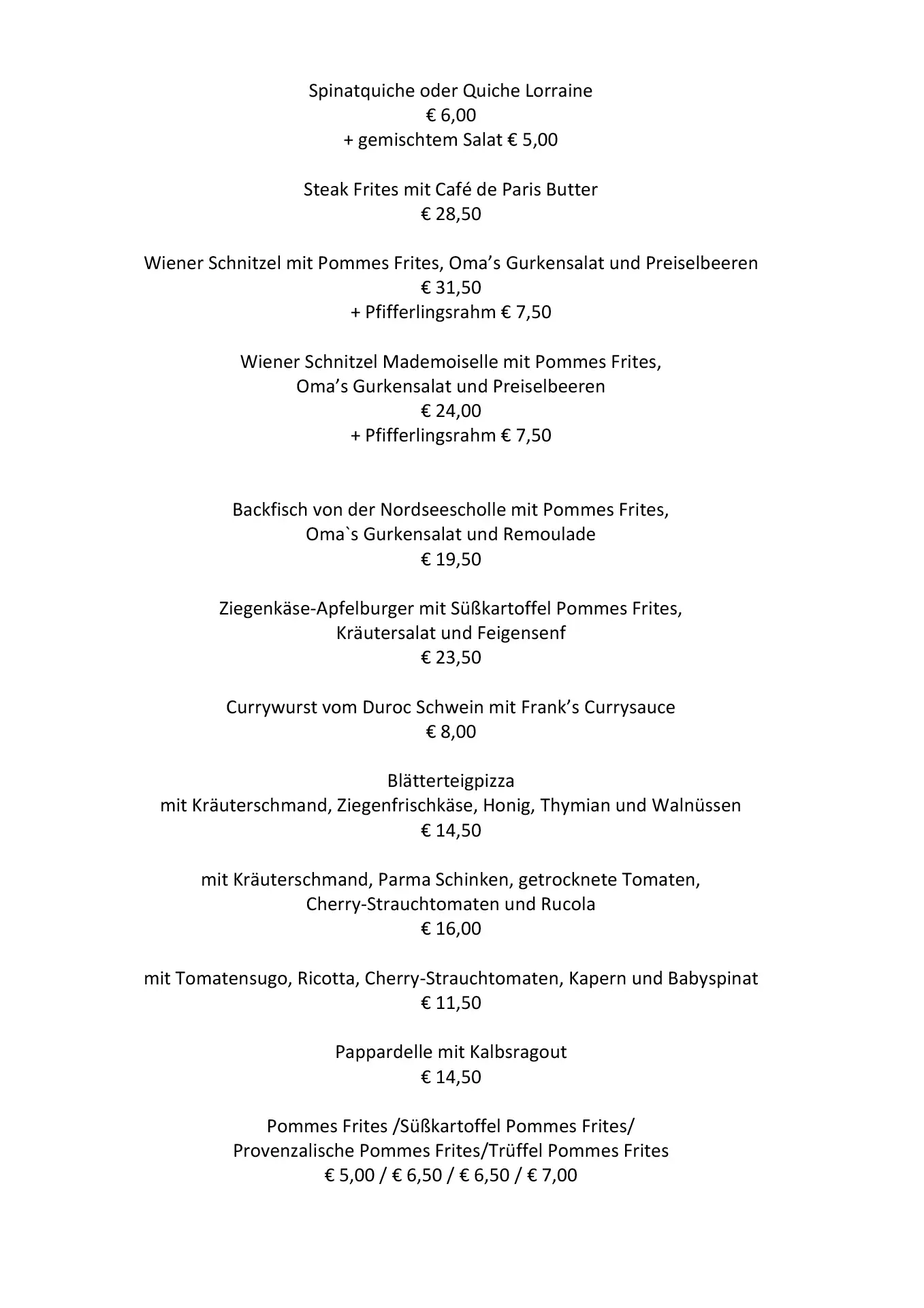 Die Küche ist ein Mix aus Frankreich und Norddeutschland. Steak Frites, Schnecken, Frikadelle mit Kartoffelsalat, Blätterteigpizza, um nur einiges zu nennen. Französisch inspirierte Desserts und selbst gebackener Kuchen findet ihr auch bei uns. Natürlich haben wir auch an Vegetarier gedacht.